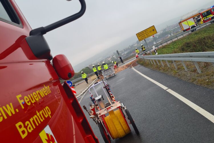 (09.10.2025) Am Donnerstag Morgen alarmierte die Feuerschutz,- und Rettungsleitstelle des Kreises Lippe alle drei Einsatzabteilungen der Freiwilligen Feuerwehr Barntrup mit dem Alarmstichwort „TH VU klemmt, 2 PKW, 2 Personen“ nach Alverdissen auf die Extertalstraße Abfahrt Humfelderstraße. Nach einem Verkehrsunfall sollte eine Person im PKW eingeklemmt sein. Bei eintreffen der Einsatzkräfte bestätigte sich dieses zum Glück […]