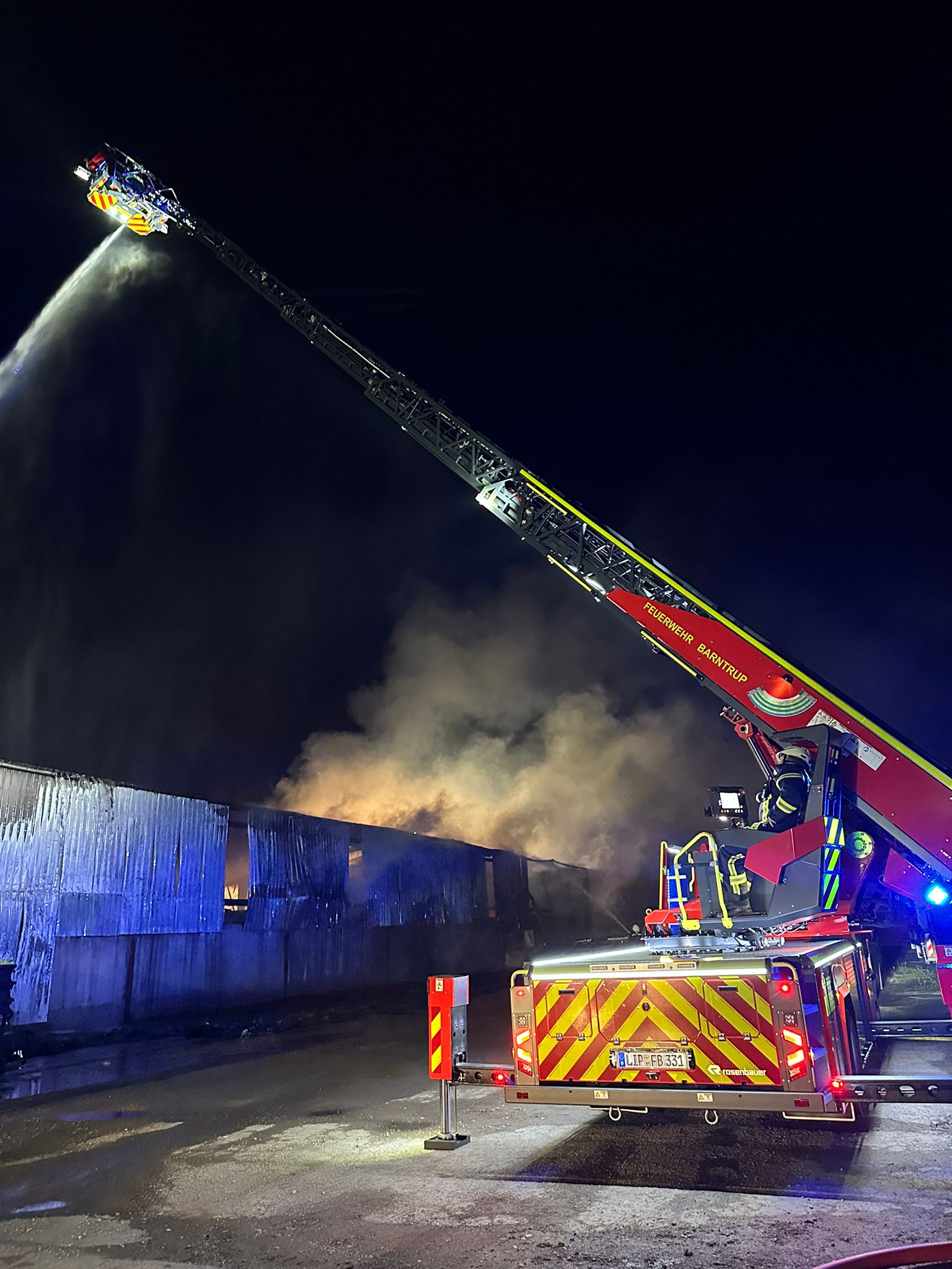 Die Drehleiter und das Tanklöschfahrzeug aus Barntrup waren zur Brandbekämpfung direkt am Gebäude eingesetzt. Der Schlauchwagen der Einsatzabteilung Barntrup baute eine ca. 1km lange Wasserversorgung von einer Wasserentnahmestelle am Bauhof der Gemeinde Dörentrup bis zur Einsatzstelle auf.