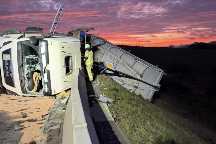 (02.12.2025) Am Dienstag Morgen wurden alle drei Einsatzabteilungen der Freiwilligen Feuerwehr Barntrup von der Feuerschutz,- und Rettungsleitstelle des Kreises Lippe mit dem Alarmstichwort „TH P-klemmt 2: VU LKW, mehrere Personen eingeklemmt, LKW gegen PKW“ nach Barntrup auf die Umgehungsstraße B66n alarmiert. Bei eintreffen der ersten Einsatzkräfte lag ein LKW über einer Betonleitplanke auf der Seite […]