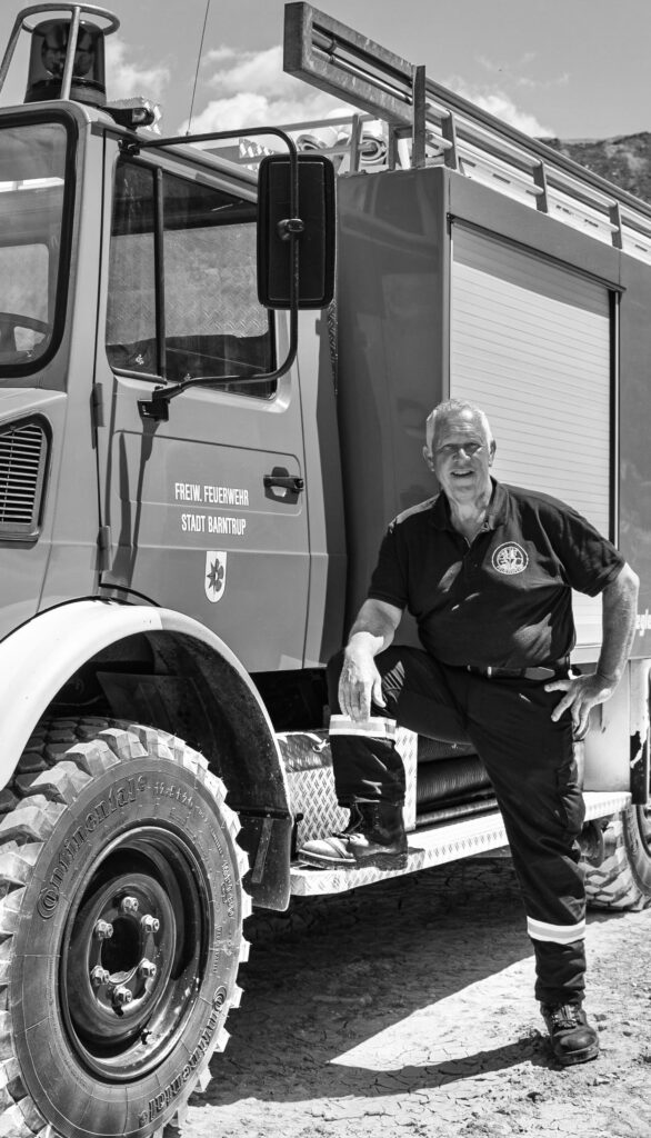 Der Feuerwehrdienst und insbesondere die Aufgabe, Menschen in Notlagen zu helfen, Ihr Hab und Gut zu schützen, war für ihn Ehrensache. Hans-Georg ist am 01.10.1976 im Alter von 19 Jahren in die Freiwillige Feuerwehr eingetreten und wurde dort in der Einheit Barntrup eingesetzt. In den folgenden Jahren hat er seine Grundausbildung abgeschlossen und konnte bereits 1982 den Truppführer-Lehrgang und 1987 dann auch den Gruppenführer-Lehrgang besuchen. Mit erfolgreichem Abschluss folgte 1988 die Beförderung zum Brandmeister. Weitere Beförderungen bis hin zum Hauptbrandmeister im Jahr 2002 schlossen sich an. Darauf hat sich Schorse aber nicht ausgeruht und so hat er weitere Lehrgänge besucht wie z.B. den Drehleiter-Maschinisten Lehrgang auf Landes- und auf Stadtebene sowie regelmäßig an Sonderausbildungen teilgenommen, um sich immer wieder auf den aktuellen Stand zu bringen und sein Wissen zu vertiefen. Gerade die Drehleiter und sonstigen Großfahrzeuge haben es ihm jedoch angetan und so war er bei Einsätzen oft auf dem Fahrersitz anzutreffen.